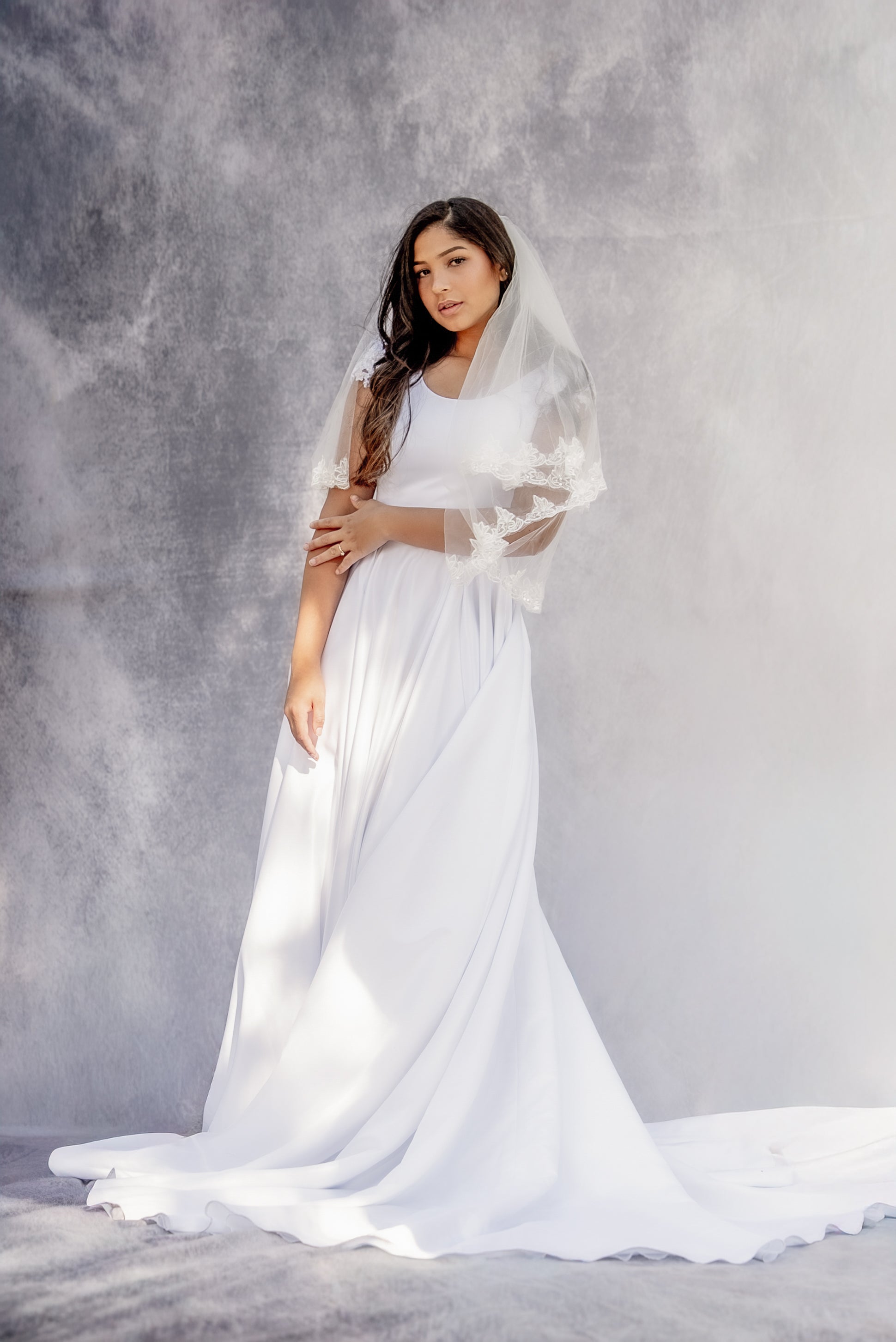 When you walk down the aisle in the gardenia dress, you won’t just be wearing a wedding dress — you’ll be stepping into a living symbol of purity, love, and fresh beginnings. Crafted in luxurious stretch crepe, the gown flows effortlessly over your curves, giving you both poise and comfort.